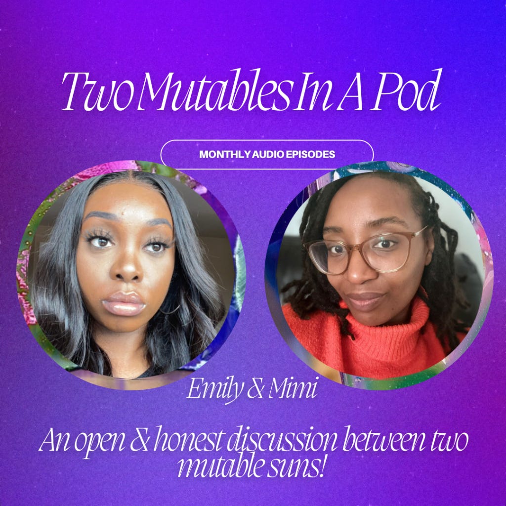 Emily and Mimi are soul wanderers often yapping about astrology, life experience and traditional African spirituality on their podcast 'Two Mutables In A Pod'.